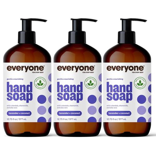 Sabonete líquido para mãos Everyone, 12,75 onças (pacote com 3), lavanda e coco, limpador à base de plantas com óleos essenciais puros