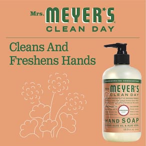 Sabonete para mãos MRS. MEYER'S CLEAN DAY, feito com óleos essenciais, fórmula biodegradável, gerânio, 12,5 fl. oz