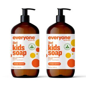Sabonete infantil Everyone 3 em 1, sabonete líquido, banho de espuma, xampu, 32 onças (pacote com 2), espremedor de laranja, limpador de coco com extratos vegetais orgânicos e óleos essenciais puros (a embalagem pode variar)