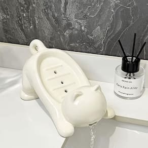 Saboneteira Banheiro Lavabo Sabonete Gato Gatinho Luxo Cor: Rosa Saboneteira Banheiro Lavabo Sabonete Gato Gatinho Luxo Saboneteira em Formato de Gato - Charmosa, Prática e Funcional Dê um toque de fofura e praticidade ao seu banheiro com a Saboneteira em formato de gatinho. Ideal para amantes de pets e decoração criativa, essa peça une design divertido e funcionalidade inteligente. Com orifício de drenagem em formato de favo de , a saboneteira evita o acúmulo de água, mantendo o sabonete sempre seco e firme, sem amolecer ou grudar. Além disso, seu design amplo comporta sabões de diferentes tamanhos, inclusive os mais espessos. Destaques do Produto: Design em formato de gatinho - charme e personalidade para o ambiente Drenagem rápida - evita que o sabão derreta ou grude Grande capacidade - acomoda diversos tamanhos de sabonete Versátil - pode ser Utilizado no banheiro, lavabo, box, pia ou bancada Simples, moderno e fácil de combinar com qualquer estilo de decoração Especificações: Material: ABS resistente Cor: Rosa Claro Dimensões aproximadas: Comprimento: 17,5 cm Largura: 10 cm Altura: 9 cm Conteúdo da Embalagem: 1 Saboneteira Porta Sabonete em Formato de Gato Perfeita para presentear quem ama gatos ou para deixar seu banheiro mais encantador e organizado. Marca: Não Informado