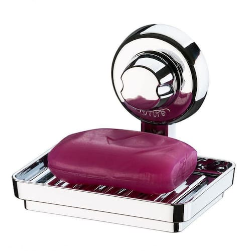 A Saboneteira possui canaletas em alto relevo para que o sabonete não tenha contato com a água. E se ficar água na saboneteira, ela é facilmente removível para fazer o escoamento.