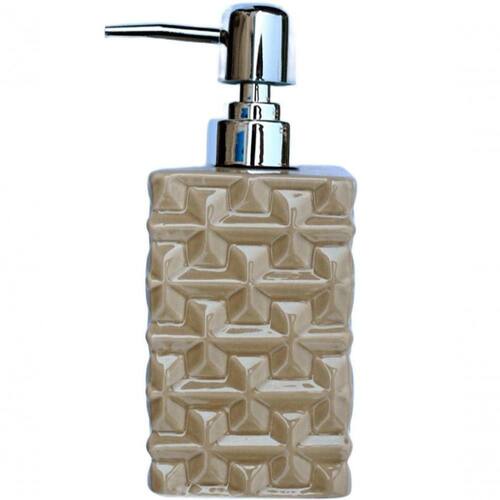 Saboneteira Liquida Banheiro Cerâmica Bege E Prata De 350ml Saboneteira Liquida Banheiro Cerâmica Bege E Prata De 350ml - Transforme Seu Banheiro com Nosso Acessórios :