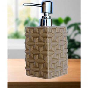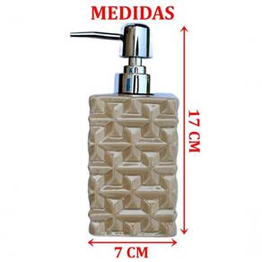 Características Gerais do Produto: - Material: Cerâmica - Modelo: Saboneteira Líquida - Cor: Bege; Prata - Dimensões aproximadas: Altura 17cm X Diâmetro 7cm - Capacidade em litros: 350ml Garantia: - Garantia contra no