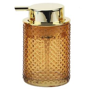 Toque de Luxo no Seu Banheiro! Porta Sabonete Líquido em Vidro Âmbar Relevo com Tampa Touch Dourado - 260ml