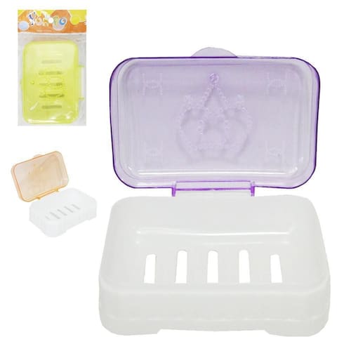 Saboneteira de pia de plastico retangular colors com tampa 12x8x5cm na solapa