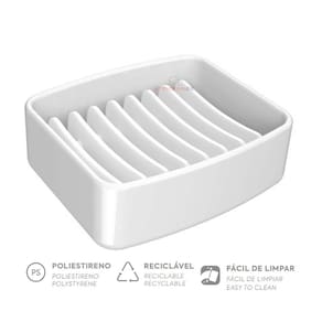 Com design de linhas simples e retas, a nova saboneteira é perfeita para organizar a bancada do banheiro. Oferece praticidade na medida certa. Sua grade interna garante que o sabonete permaneça seco, evitando o contato com água que pode se depositar em seu interior.