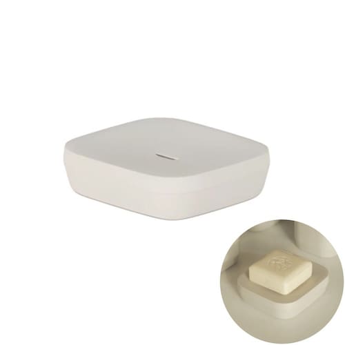 A saboneteira Ou da Linha Aura possui uma base angular que mantém o sabonete seco, evitando acúmulo de água e prolongando a sua durabilidade. Com uma abertura para escoamento e base desmontável, é fácil de limpar, garantindo higiene no uso diário. Seu design minimalista com acabamento fosco valoriza a decoração, transformando o banheiro em um espaço elegante e funcional.