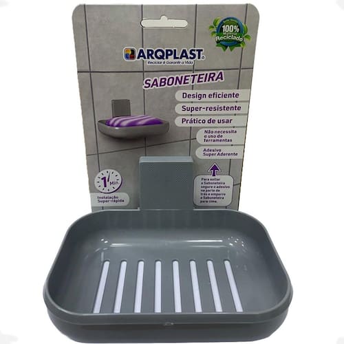 Saboneteira Suporte de Parede Com Suporte Adesivo Cor Cinza