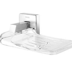 Saboneteira em acrílico com cantos arredondados para maior segurança. A peça possui dois orifícios centrais e uma leve curvatura, por onde a água acumulada com o uso escoa para baixo, não permitindo o acúmulo de resíduos em sua base, facilitando a limpeza.