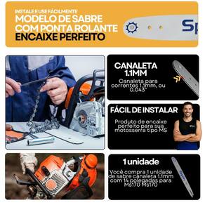 Sabre de 14 polegadas com ponta rolante, desenvolvido para motosserras leves, ideal para cortes precisos em madeira, podas e trabalhos gerais. Conta com 25 dentes, passo de 3/8 e canal de 1.1 mm 0.043 , oferecendo menor atrito, maior durabilidade e melhor desempenho de corte. Compatível com as motosserras Stihl MS 170, MS 180 e modelos similares.