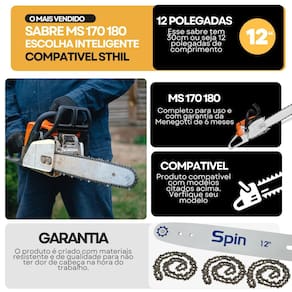 conjunto Sabre de 12 Polegadas + Corrente para Motosserra MS170/MS180
