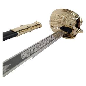 Acabamento Nobre: A empunhadura em tonalidade marfim sintético, aliada aos detalhes dourados, eleva este sabre a um nível de requinte excepcional, destacando-se em qualquer contexto decorativo.
