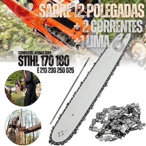 Obtenha o Máximo de Desempenho para a sua Motoserra Stihl 170 180 com o Nosso Kit Especial Se você possui uma Motoserra Stihl 170 180, então você sabe o quão importante é ter as peças certas para garantir o melhor desempenho. Nosso Kit Sabre + 2 Corrente + é a escolha perfeita para manter sua motosserra funcionando no auge de sua capacidade. O que está incluído no Kit: Sabre de Alta Qualidade: O sabre incluído é fabricado com materiais resistentes e duráveis, projetado para lidar com os trabalhos mais difíceis. Seu tamanho é perfeitamente compatível com as motosserras Stihl 170 180, garantindo um ajuste perfeito e desempenho superior. Duas Correntes de Reposição: Não importa o quão duro você trabalhe, as correntes de motosserra desgastam-se com o tempo. É por isso que incluímos duas correntes de reposição de alta qualidade neste kit. Elas são projetadas para cortar com precisão e eficiência, garantindo que você possa continuar trabalhando sem problemas. Nota: Este kit é compatível apenas com as motosserras Stihl 170 e 180. Certifique-se de verificar a compatibilidade antes de fazer sua compra. Marca: Bjb Equipamentos