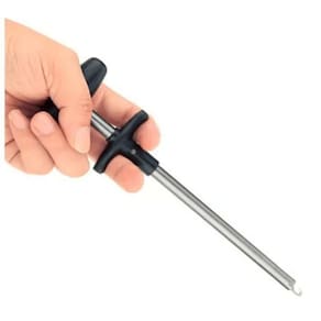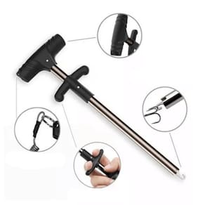 Saca Anzol Pesca Removedor Para Tirar Anzol Da Garganta Peixe Retire anzóis ou garatéias de dentro da boca do peixe com facilidade de segurança. Não corra o risco de se ferir ou machucar o peixe. Ideal para sacar anzóis garatéias de dentro da boca de peixes com dentição afiada. O removedor de anzol manterá seus dedos longe de dentes de peixe afiados. Feito em alumínio e material plástico, durável e prático. Com borda arredondada de aço inoxidável reduz significativamente os danos ao peixe ou linha de pesca. Alça de plástico ergonômica antiderrapante, se encaixa perfeitamente Na palma da mão e fácil de usar.