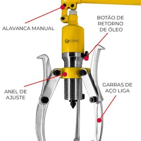 Saca Polias Rolamentos Hidráulico 5T com 3 Garras Profissional Charbs O Saca Polias Hidráulico de 5 Toneladas Charbs é uma ferramenta robusta projetada para tornar a remoção de polias uma tarefa simples e eficiente. Este equipamento é essencial para profissionais exigentes que buscam desempenho superior e versatilidade em suas operações. DIFERENCIAIS - POTÊNCIA HIDRÁULICA: Lide facilmente com polias de diversos tamanhos e materiais, garantindo uma remoção suave e eficaz. - CONSTRUÇÃO ROBUSTA: Projetado para durabilidade e resistência, oferecendo confiança em ambientes de trabalho exigentes. - DESEMPENHO INIGUALÁVEL: Realize a remoção de polias com facilidade e rapidez, economizando tempo e esforço. - VERSATILIDADE: Saca polias internas e externas. Trabalha com 2 ou 3 garras, fixando melhor a polia ou o rolamento a ser sacado ESPECIFICAÇÕES - Marca: Charbs - Capacidade: 5 toneladas - Comprimento das Garras: 10 Pol 250mm - Distância do eixo efetiva: 50mm - Distância vertical máxima: 140mm - Distância horizontal máxima: 200mm - Peso: 6.5kg - Dimensões da embalagem: 46 x 21 x 10cm - : 90 dias ITENS INCLUSOS - 1 Saca Polias Hidráulico - 1 Alavanca de acionamento - 3 Garras extratoras - 1 Conjunto de parafusos e peças para montagem das garras - 1 Kit de Reparos Para Saca Polias Hidráulico - 1 Maleta Para Transporte - 1 Manual em português Marca: Não Informado