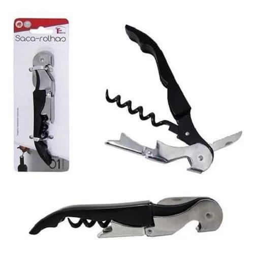 Saca Rolhas com facilitador de abertura 2 estágios Corpo em metal e plástico, maior resistência Com abridor de garrafa de cerveja e cortador de comprimido
