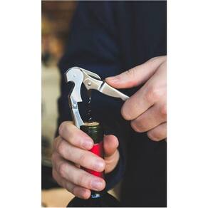 Saca-Rolha Dois Estágios Abridor Garrafa Vinho Aço Escovado