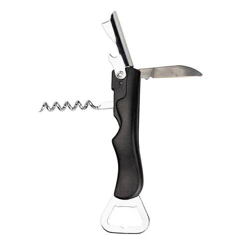 Saca Rolha E Abridor Multiuso Preto Aço Inox 14 cm Hauskraft Praticidade na hora de abrir seu vinho com saca rolha Hauskraft, confeccionado em aço inox, produto de qualidade e ideal para uso em bar Dimensões da Peça: 14 x 4 x 2cm Dimensões da Embalagem: 17,5 x 6,5 x 2cmMaterial: Plástico e Ferro - Cor: Preto Tipo de Embalagem: Suporte Marca: HAÜSKRAFT Origem: China Cuidados: Lave com detergente neutro e enxágue com água em abundânciaPara secar, utilize um pano seco e macioEvite o uso de produtos abrasivos