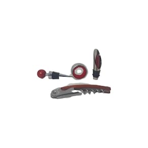 Design, qualidade e funcionalidade são a essência da marca. Jogo para vinho, completo para aproveitar seus momentos Saca rolha de boa empuhadura, para não machucar as mãos Cortador de lacres, prático e seguro Anel corta gotas, evita que o vinho escorra por fora da garrafa