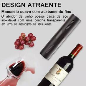 Saca Rolhas Abridor De Vinho Garrafa Automático Eletrico x000dx000dO pacote inclui abridor de garrafa operado por bateria sem fio, cortador de folha, rolha de garrafa para conservante de vinho e bico de gaseificação.x000dx000dx000d--------------------- BIG BOOST ------------------------Saca Rolhas Abridor De Vinho Garrafa Automático EletricoO pacote inclui abridor de garrafa operado por bateria sem fio, cortador de folha, rolha de garrafa para conservante de vinho e bico de gaseificação. Marca: Alinee
