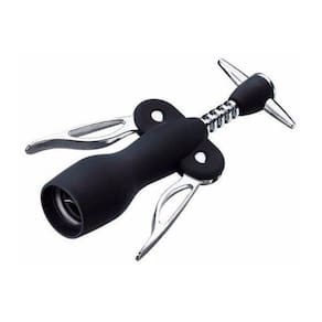 Saca rolhas com alavancas que potencializam a força aplicada, este saca-rolhas é ideal para retirar rolhas com pouco esforço. Feito com plástico e metal em design elegante e sofisticado, tornando a hora de servir muito mais prazerosa.