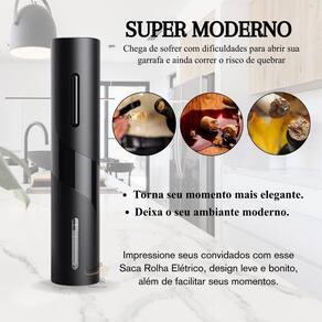 Saca rolhas abridor garrafa vinho automático elétrico pilhas Cor: preto esta saca rolha elétrico é um produto versátil e completo que irá revolucionar o seu momento de degustação de vinhos. além de sua funcionalidade, este saca rolha elétrico é moderno e elegante, adicionando um toque de sofisticado a qualquer ambiente. Sua portabilidade permite que você leve-o consigo onde quer que vá, seja em um piquenique no parque ou em uma viagem de fim de semana. com o funcionamento à base de 4 pilhas aa, esta saca rolha elétrico é fácil de usar e é uma escolha perfeita para quem deseja abrir suas garrafas de vinho sem esforço. Não perca mais tempo lutando com rolhas de vinho, experimente o saca rolha elétrico e desfrute do seu vinho com facilidade e elegância. ------------------ Perguntas frequentes ------------------ o saca rolha funciona com quantas pilhas Qual tamanho R: funciona com 4 pilhas aa. não inclusas quantas peças vem Qual a sua função R: o produto acompanha o saca rolha - remove a rolha com facilidade, vem na caixa Da para presentear R: sim, realizamos o envio na caixa do produto, perfeito para dar de presente, combina com diversas ocasiões. ------------------ Especificações ------------------ Altura: 23 cm. Largura: 5 cm. Fonte de alimentação: 4 pilhas aa não possui Tempo de abertura da garrafa: 6-7 segundos. ------------------ Conteúdo ------------------ 1x saca rolha elétrico. 1x manual. ------------------ Apresentação: ------------------ Atuamos no mercado desde 2019 como loja de departamentos. Nosso principal compromisso é sempre estar inovando e oferecendo variados produtos com qualidade incomparável, para que você tenha uma experiência mágica e única ao obter os nossos produtos. Todos os nossos produtos passam por um amplo teste de qualidade antes de serem vendidos. Os produtos são testados e vistoriados antes de serem enviados aos clientes, para não ocorrer transtornos. Procuramos embalar os produtos da melhor forma possível, para que o mesmo não venha sofrer durante o transporte e corra o risco de chegar danificado ao consumidor. Nossa equipe é totalmente qualificada e estaremos a disposição para esclarecer as suas dúvidas, solucionar os seus problemas e fornecê-los o melhor atendimento possível. - qualidade garantida. - atendimento qualificado. - enviamos para todo o brasil. - compra garantida. - despachamos em até 1 dia útil após confirmação do pagamento garantimos a devolução por arrependimento em até 7 dias, após o recebimento e de 15 dias contra defeitos de fabricação. Marca: Star Capas E Acessórios
