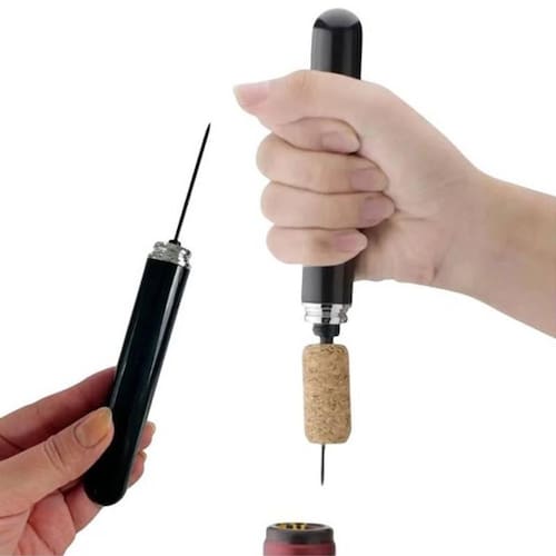 Saca Rolhas Manual Preto Sistema Tipo Pneumático Silencioso Saca Rolhas Manual Preto Sistema Tipo Pneumático Silencioso ===================================== Um acessório moderno, eficiente e sofisticado, ideal para quem deseja abrir garrafas de vinho com rapidez e sem esforço.