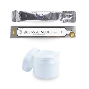 O Gel Classic Nude Glitter é um gel construtor para unhas que une resistência, versatilidade e sofisticação. Com viscosidade autonivelante e tecnologia de densidade estática, ele garante mais controle durante a aplicação. Em formato refil, no sachê com 14g, ele oferece praticidade e economia, com flakes violetas e partículas de glitter prateadas que proporcionam um acabamento elegante e moderno. Ideal para alongamentos de unhas e modelagens perfeitas, garantindo unhas duradouras e com brilho impecável. O pote branco evita desperdícios e vem para somar esse kit, com sua vedação confiável e design funcional, este potinho branco com colher e duas tampas é perfeito para a organização e conservação de seu gel favorito, mantendo-os sempre prontos para uso e em ótimas condições.