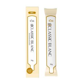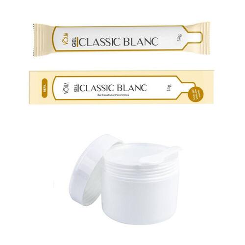 Contém: 01 - gel sachê classic blanc refil unhas alongamento led/uv 14g, vlia 01 - pote branco com tampa 01 - vedação encaixável antes da tampa 01 - colher plástica que pode ser armazenada por cima da vedação
