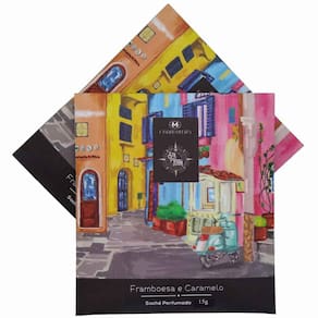 Sachê perfumado Madressenza framboesa e caramelo 80 ml Esse sachê super versátil proporciona uma fragrância com um lado de Framboesa, originária do centro da Europa, que é um arbusto que produz pequenos e doces frutos coloridos. Do outro, o Caramelo, de origem oriental que popularizou-se na Idade Média europeia. Essa combinação resulta em um aroma doce e marcante de um floral frutal gourmand encantador. Ideal para aromatizar armários, gavetas, porta luvas, automóveis, banheiros, closets, sapateiras ou o que você achar interessante.