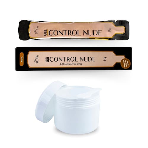 Contém: 01 - gel sachê refil control nude 14g, vlia 01 - pote branco com tampa 01 - vedação encaixável antes da tampa 01 - colher plástica que pode ser armazenada por cima da vedação