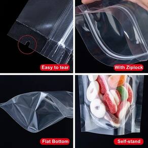 Embalagem Stand Up Pouch Saco Plástico Transparente Stand Up Pouch Hermético Fêcho Zip - 20x30+5cm - 100 Unidades