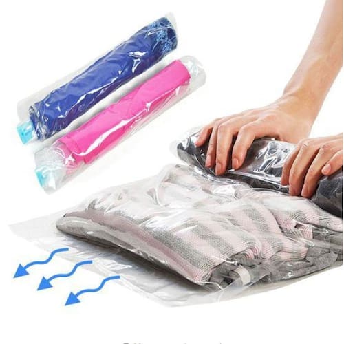 Preço por unidade. Funcionamento: Extremamente prático e útil, o saco para embalagem a vácuo funciona de maneira simples: Basta você dobrar as roupas, inseri-las no saco e fechar o ziplock. Em seguida retire a tampa para sucção do ar, coloque o aspirador de pó neste furo e ligue o aspirador até que praticamente não haja mais ar no interior do saco. Vantagens do produto: - Saco reutilizável - Permite compactar até 30 blusinhas dobradas - Triplica o espaço nos roupeiros e guarda-roupas - Evita aparecimento de mofos, fungos e malcheiro - Material: PVC Hermético e reutilizável. - Dimensões: 60cm comprimento x 80cm largura . INFORMAÇÕES IMPORTANTES: - A s cor es dos produtos podem sofrer variação de tonalidade, de acordo com a configuração do seu dispositivo ou monitor. Ean: 2960009346500