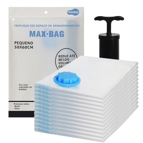o saco à vácuo da maxime é de alta resistência, fabricado em pvc, ele é á prova de umidade, hermético, reutilizável, impermeável e super fácil de usar. Protege contra: mofos, odores, insetos: traças, fungos; sujeira e pó. Conteúdo da embalagem:
