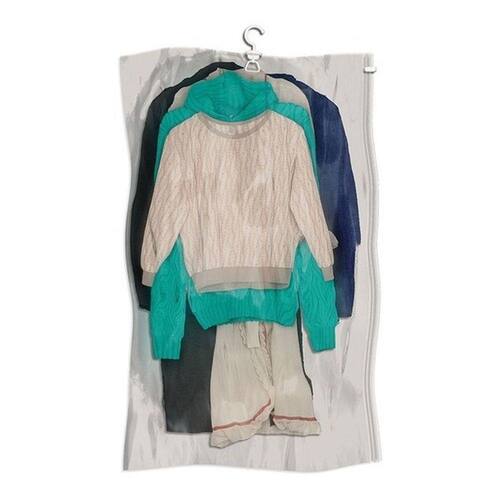 Organizador a vácuo com cabide. A solução ainda mais prática para quem busca armazenar e organizar objetos de forma fácil, rápida, inteligente e ainda reduzir o espaço em até 3 vezes o volume do objeto, protegendo contra traças, insetos, mofo, poeira, sujeira, odores e umidades Preço por unidade. Características- Material: Plástico- Saco reutilizável- Material impermeável- Possui gancho para pendurar no guarda roupa- Medidas: 67cm (largura) x 109cm (comprimento)- Evita aparecimento de mofos, fungos e mau cheiro.- O ar pode ser drenado por aspirador de pó ou bomba.Cuidados- Não armazenar objetos cortantes ou pontiagudos.- Não utilize o organizador para armazenar alimentos.- Não recomendado para peças de couro. INFORMAÇÕES IMPORTANTES:- A(s) cor (es) dos produtos podem sofrer variação de tonalidade, de acordo com a configuração do seu dispositivo ou monitor.- O prazo de entrega informado no anúncio é apenas uma previsão, podendo sofrer alterações na data de entrega informada no ato da compra por motivo de força maior.