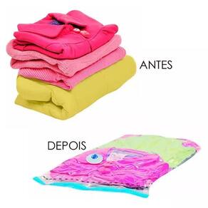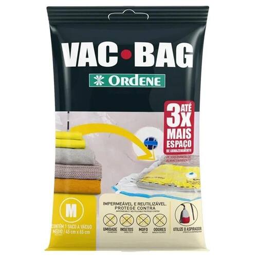 Vac Bag é a solução ideal para quem busca armazenar e organizar objetos. De forma fácil, rápida e inteligente, reduz o volume dos objetos em até 3 vezes, protegendo contra traças, insetos, mofo, poeira, sujeira, odores e umidades. Produzido em polietileno transparente, que facilita a visualização do que há em seu interior, o Vac Bag é reutilizável e ideal para todos os volumes de roupas, cobertores, edredons, travesseiros, roupas de cama, mesa e banho.