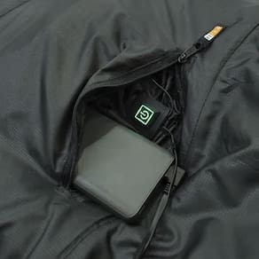 Para acionar o sistema de aquecimento, basta plugar seu Power Bank Sao 5 pontos de aquecimento: 3 na área superior peitoral, 1 na região mediana e 1 nos pés.