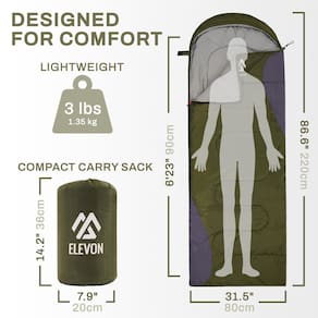 Saco de dormir Elevon para adultos, adolescentes, crianças, climas frios e quentes, portátil, impermeável e leve, compacto com saco de compressão, para 3 a 4 temporadas de acampamento, mochilão, caminhadas, viagens, ambientes fechados e ao ar livre