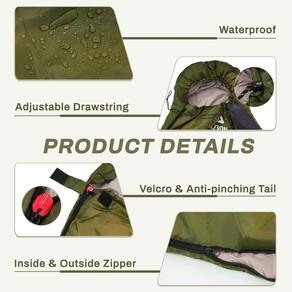 - Material de alta qualidade: é perfeito para primavera, verão, outono e clima frio. Feito de poliéster 210T durável e impermeável, enchimento de algodão oco altamente elástico para retenção de calor, forro, tecido durável respirável e agradável à pele, este saco de dormir protege você da umidade e do vento. Se você estiver acampando em temperaturas amenas ou mais baixas (50°F-68°F), o enchimento oco de algodão fornece calor e isolamento para um sono reparador