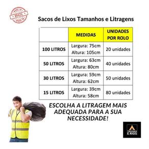 Saco de Lixo Extra Forte Uso Pesado Preto 15L 80UN 30L 50UN 50L 40UN 100L 20UN Higipack