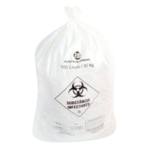 Saco de Lixo Infectante 30L para Descarte de Materiais Hospitalares em PEAD ABNT NBR 9191/7500 Branco Higipack