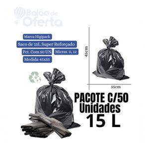 Saco de Lixo Super Reforçado Preto 15L 50 Unidades para Descarte Doméstico e Comercial Higipack