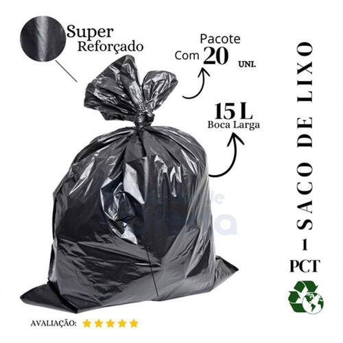 Saco de Lixo Super Reforçado Preto 15L Pacote com 20 Unidades para Uso Doméstico e Comercial Higipack