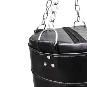 ideal para treinos de atletas profissionais e amadores, indicado para aplicação de chutes e socos altos (cabeça), médios (peitoral) e baixos (pernas). Confeccionado em policloreto de alta resistência, o saco de boxe possuí 180 cm de altura por 100 cm de circunferência (O tamanho total contando desde o fundo do produto até o término da alça fica em aproximadamente 195 cm de altura). Quatro pontas de apoio reforçadas com dupla camada de PU acompanhadas com argolas, correntes e um exclusivo sistema de mosquetão com trava, pronto para pendurá-lo O saco de pancada é enviado VAZIO e possuí um zíper na parte superior facilitando o enchimento.