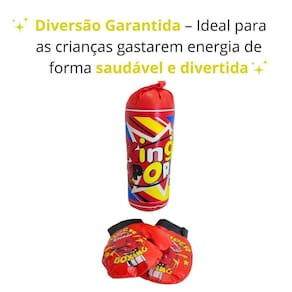 Saco de pancadas boxe infantil com luvas esporte wb7955 Estampa: king Tamanho: un Transforme a brincadeira em diversão saudável este kit de boxe é perfeito para crianças gastarem energia, desenvolverem coordenação motora e se exercitarem de forma divertida. Conta com 1 saco de boxe e 1 par de luvas, ideal para crianças acima de 03 anos, seu material leve, seguro e resiste, pode ser pendurado em qualquer local de fácil acesso para as crianças, além de ser uma excelente opção de presente para as crianças, o seu designer colorido chama atenção e torna a brincadeira ainda mais agradável. Garanta já o seu e proporcione momentos de lazer e atividade física para os pequenos Por que comprar com a imports - enviamos em até 24 horas; - produto de ótima qualidade; - produto testado e muito bem embalado para chegar em perfeito estado; - foco total no cliente. Informações importantes: - modelo: saco de boxe infantil com luvas - material: plástico pvc + further - medidas: Saco - 35x12 cm Luvas - 19x17x9 cm - material leve e resistente - fácil de pendurar - estimula a prática de exercícios físicos - recomendado para crianças acima de 03 anos - registro inmetro: 003292/2024 Marca: Não Informado Ean: 7895929440326