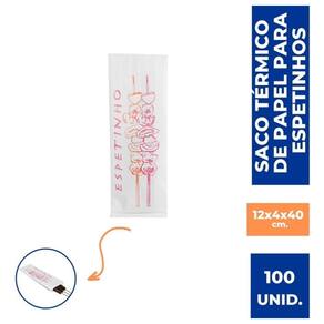 Embalagem de Papel Térmico para Espetinho com 100 Unidades Dimensões: 12x40x4 Contém: 100 unidades. Saco de papel branco com barreira anti gordura, produto desenvolvido especialmente para transporte de espetinhos. É muito comum vermos aos finais de semana em pontos tradicionais da cidade os pontos de assar espetinhos. Sempre com aquele cheiro gostoso, visual bonito que nos dá água na boca. Estes espetinhos merecem uma embalagem própria, algo realmente desenvolvido para ele. Use o saco térmico e permita que além de bonito e gostoso este espetinho chegue quentinho na sua casa. A Tamarozzi Embalagens atua no mercado desde 1995, e tornou-se referência em embalagens descartáveis. Hoje comercializamos um mix de embalagens que buscam valorizar seu produto, tendo como compromisso a qualidade, a confiabilidade de seus produtos e o respeito. A Tamarozzi Embalagens conta atualmente com representantes em todos os Estados do Brasil e uma rede de aproximadamente 3.000 distribuidores. Marca: TAMAROZZI