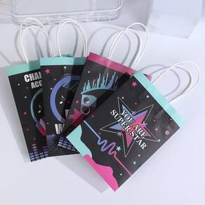 Material: couro bovino branco; tamanho: 15* 8* 21 cm; peso: 22 g; quantidade: 12 peças. Material de papel kraft branco premium — Feito de papel kraft branco resistente com uma superfície lisa, oferecendo resistência confiável e, ao mesmo tempo, é leve, estruturado e confortável de segurar sem cortar as mãos. Impressão ousada em estilo de música eletrônica — apresenta um padrão gráfico moderno inspirado na estética eletrônica e urbana, proporcionando um forte impacto visual que se destaca pelos estilos de vida contemporâneos e pelas necessidades criativas de embalagens. Alças reforçadas para uso diário — Projetadas com alças de papel bem fixadas que fornecem aderência segura e distribuição equilibrada do peso, tornando o transporte de pequenos itens, acessórios ou roupas fácil e estável. Tamanho compacto e prático — Medindo 15 × 8 × 21 cm, essas bolsas são ideais para roupas pequenas, cosméticos, acessórios ou lembrancinhas, além de serem fáceis de guardar e empilhar quando não estão em uso. Versátil para várias ocasiões — Adequado para aniversários, reuniões, butiques, lojas pop-up e eventos sociais, combinando estilo moderno com embalagens funcionais para momentos diários e especiais.
