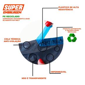 Trata-se de um envelope fabricado com polietileno 100% reciclado, que além de ser um produto sustentável, possui um ótimo custo benefício. Seu fechamento é feito por cola térmica de alta qualidade que impossibilita abertura do envelope. É um envelope de simples manuseio e fácil armazenamento, o que garante agilidade na operação e redução de tempo no processo de expedição.É um envelope de cor cinza, e por se tratar de um produto reciclado, pode ocorrer variações de tonalidade, entre cinza claro e escuro.É um envelope de simples manuseio e fácil armazenamento, o que garante agilidade na operação e redução de tempo no processo de expedição.Sugestão de Envio: Calçados, jaquetas, blusas de moletom, brinquedos, calças. quantidade: 1000 unidadesTamanho50x50 cmComposiçãoPlástico Polietileno 100% RecicladoTipo colaHot Melt cola térmica Sugestão de envioCalçados, jaquetas, blusas de moletom, brinquedos, calças. Marca: Super Embalagem