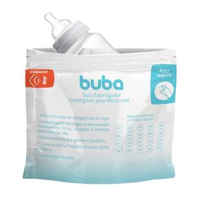 O Saco Esterilizador Reutilizável para Micro-Ondas da Buba é o aliado perfeito para manter os itens do seu bebê livres de germes e bactérias, com praticidade e eficiência. Com a capacidade de eliminar 99,9% dos germes, esse saco torna o processo de esterilização de mamadeiras, bicos, chupetas e bombas extratoras de leite muito mais simples.