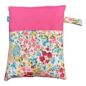 Saco Impermeável Grande Organizador Fralda Roupa Suja Limpa - Flores Rosa - Tactel